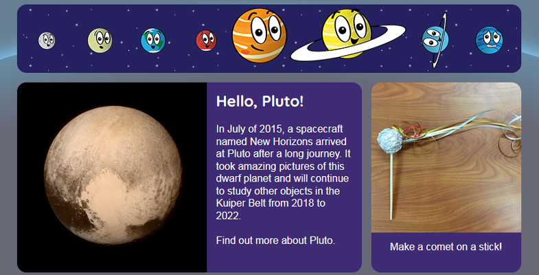 Introduction We aim to show that astronomy can be fun and a great learning experience for both adults and children. Swindon Stargazers is committed to encouraging the younger generation in the joys and rewards of practical astronomy. With the help of links to other websites, and special thanks to NASA and JPL this page will hopefully prove a great resource for parents and educators alike. |