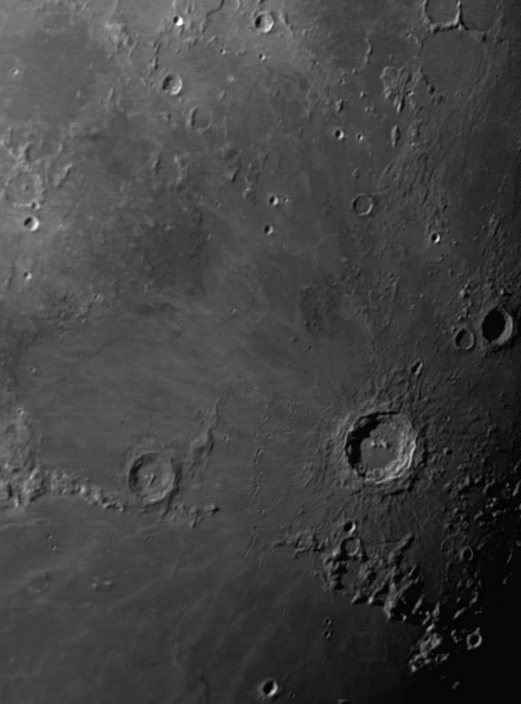 and Reinhold Copernicus is also visible using binoculars, and is located slightly northwest of the center of the Moon's Earth-facing hemisphere. South of the crater is the Mare Insularum, and to the south-south west is the crater Reinhold. Due to its relative youth, the crater has remained in a relatively pristine shape since it formed. |