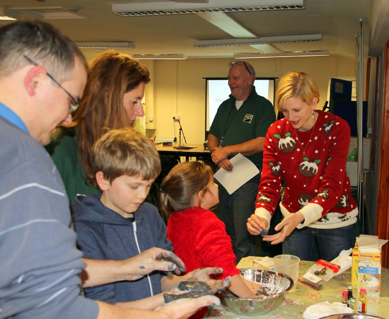 Originally conceived as an event to watch the Geminids Meteor Shower, the clouds closed in unfortunately and our plans changed to an indoor event for adults and children with activities and presentations by members of Wiltshire Wildlife Trust and Swindon Stargazers. Far from being a washout, it is true to say that everybody enjoyed the activities and learning about space. One presentation consisted of 'the sky at night around Blakehill Farm' (what we might have seen!), whilst another explained how meteor showers occur. |