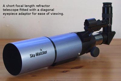 here. Please read on and all will become clear! There are about three main types of telescope. The Refractor. The Reflector or Newtonian. And the Cassegrain or catadioptric telescope. The refractor telescope is what most people think of when you mention the word telescope. It's a hollow tube with a lens at one end and an eyepiece at the other. And basically thats what a refractor is. The lens causes the light rays to bend or refract to a point near the eyepiece. At this point an image is formed which is magnified by the eyepiece. Sounds simple doesn't it? Why can't I just get a bit of drain pipe, borrow Grans magnifying glass and stick that at one end, then get an eyepiece and stick it in the other? Well you could, as long as Granny knows! In fact some years back I tried to build my first telescope like that. Sadly it didn't work very well. This