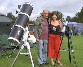 Great Event! The great thing about the Salisbury Star Party, held just 10 miles south of Salisbury between the 19 & 23 August was that in many cases whole families came to enjoy events, and the atmosphere was warm and friendly. Perhaps the weather wasn't too kind with cloud drifting over to fill the night-skies as we went into Friday and Saturday, but hey, this is English Astronomy, what do you expect in our unique climate! But whilst the clouds cleared there was great viewing to be had, and all credit to Darren for organising such a great event. There were a several members of Swindon Stargazers present, this included our Chairman Peter Struve, Vice Chairman Owen Brazell, and Communications Officer Robin Wilkey and Hilary. Another Swindon astronomer, Andy Masson, was also there, along with his wife Sharon. Astronomers stayed up deep into the summer nights to catch, for example, Jupiter's moons transecting each other on the Thursday, and the close proximity of the two nearest moons to Jupiter appearing to collide with the each other and the huge planet itself. Events culminated on Saturday when lectures were given by amongst others Nick Howes, the technical expert from Wiltshire Astronomy Society on 'The Three Sides of the Sun'; and Ninian Boyle, who gave a very interesting talk on telescope maintenance. There was a complete surprise when a mobile planetarium was set up in the main hall of the campsite, and a 40 minute show wowed children and adults alike as we were taken through the Universe and into deep-space and black-holes. A Grand Barbecue followed this a little later and a great time was had by all! |