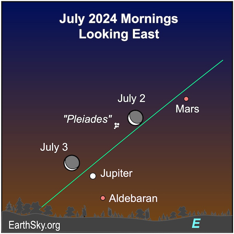 | Mars and Jupiter will be visable in early July near the ecliptic |